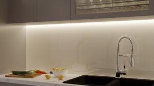 Accent Lighting: Use accent lighting to highlight specific areas like your sink or decorative features for added style.